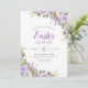 Affordable custom printed Easter lunch party invitations. This pretty feminine design has a watercolor floral border with pastel purple flowers and greenery. Personalize the template with your event details. Reverse side has a purple watercolor stripe pattern or use the space to add additional text and photos. Click Customize It to choose any background colour and edit the text fonts and colours to create unique one of a kind Easter dinner invitation.