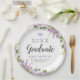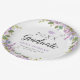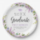 Affordable custom printed graduation party paper plates. This pretty feminine design has a watercolor floral border with pastel purple flowers and greenery. Personalize the template with your grad details. Use the design tools to choose any background colour and fonts you like or upload your own photos to further customize the design.