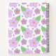 A notebook built with a lilac flower pattern. Customize it with your own text, background colour, among other options.