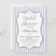 An elegant lavender lilac and silver grey bridal shower invitation featuring faux silver glitter accent frame and lilac and white stripes with grey and black text. This modern wedding shower invite is a super stylish way to welcome your shower guests for a wonderful celebration.