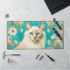fleurs blanches d'arrière - plan turquoise et une belle Lilac Lynx point Siamese cat AI Art par minx267