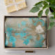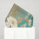 turquoise background antiqued white flowers