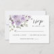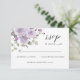 Carte RSVP mariage mauve violet moderne et élégant. Carte RSVP avec fleurs d'aquarelle peintes à la main et verdure dans les tons violet, violet, lilas, mauve et script de calligraphie verte et moderne. Vous pouvez personnaliser le libellé, le style de police, la couleur et la taille devant et derrière cette carte RSVP botanique. Éléments correspondants disponibles.