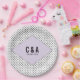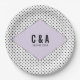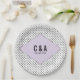 Simple and sophisticatedly chic Modern Polka Dots Wedding Paper Plates with a light purple triangle shaped overlay and a delightful black and white patterned polka dot background. These classic and minimalist geometric plates are easy to customize with your wedding details. Find more personalization options by clicking Customize.