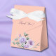 Add a touch of elegance to your baby shower with this Personalized, Lilac Floral Baby Shower favor box. Featuring beautiful watercolor lavender peony flowers intertwined with soft greenery against a soft peach background, this lavender baby shower favor box is the perfect way to say "thank you" to your guests. Its chic and sophisticated design, with delicate lilac hues, makes it a stylish addition to your baby shower decor. Give your guests a memorable keepsake with these elegant favor boxes that add charm to your special day.