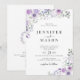 Invite your guests in style with this elegant watercolor floral wedding invitation, featuring delicate flowers in vibrant lilac, purple and lavender summer hues intertwined with eucalyptus leaves. Perfect for a garden, rustic barn, or outdoor wedding, this charming floral design captures the beauty of nature while adding a touch of timeless romance.