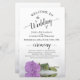 Ces programmes de mariage sont élégants et de bon goût, tout en étant toujours à l'aise avec le budget. Le design se compose d'un seul rose lilas à long tige de couleur pourpre allongé sur son côté, réfléchissant dans un bassin d'eau avec vagues et ondulations. La typographie présente une calligraphie en écriture noire dentée, et il y a de la place pour des détails sur la cérémonie, la fête de la mariée, et un bref merci.