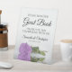 This beautiful pedestal sign will invite your wedding guests to sign your guest book. Features an elegant design with a single long-stemmed lilac purple coloured rose lying on its side mirrored in a pool of water. There is space for the names of the couple as well as the wedding date.