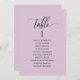 Help your guests find their table with this elegant modern lilac pastel purple seating plan cards with guests' names. Clear space all around giving you the liberty to use clips or punch holes for hanging displays, or use a table holder/frame. Double-sided cards so guests can look from both, front and back for their names. Lilac background and black text. Modern handwritten calligraphy details. Several colour options are available. Have all table numbers in the same colour or mix colours according to your event's colour theme. Part of our "Joyful Floral" collection with a variety of coordinating products available, including table number cards and menus. Visit the collection by category on this product page or browse the entire collection in one glance at: https://www.zazzle.com/collections/joyful_pastel_floral_collection-119953493901910528