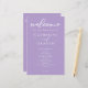 This lovely lilac wedding program features beautiful white typography on a soft purple background for a spring ceremony in the afternoon. Lavender pastel is a delicate colour choice for an elegant garden occasion.