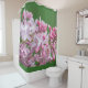 Designer shower curtain for decorating your home or cottage bath. Lilac pink mauve floral pattern.