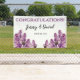 A Lilac Spring Garden Hanging Wedding Banner designed with delicate lilac flowers, on a white background. The text includes: Congratulations, The Bride and Groom's First Names and Wedding Date. To personalize, simply insert your text into our template, replacing the sample. Be sure to view the complete Lilac Spring Garden Wedding Collection for matching Cards and Reception Accessories.