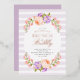 Affordable custom printed Mother's Day brunch and bubbly invitations personalized with your event details. This pretty botanical design features a watercolor frame of peach and lavender flowers on a light purple striped background. Use the design tools to customize the text, edit the fonts and colours or add your own photos to create an elegant spring floral brunch party invitation.