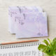 Beautiful light shade of purple background matches the RSVP and Save the Date Card in this design as well as an All-In-One invitation, and some small accessories.