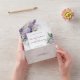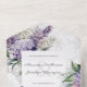 This elegant All-in-One wedding invitation is adorned with meticulously illustrated lilacs and heather sprigs, creating a botanical masterpiece. Lilacs symbolize love and happiness, while heather conveys good luck and admiration, making this design rich with meaningful symbolism. The All-in-One wedding invitations are both beautiful and practical by combining the wedding invitation with an easy to remove perforated RSVP postcard. They are also quick and easy to prepare for mailing. Simply address the invitation, fold the back flap and seal with the included clear stickers. Once your guests receive the pre-addressed invitation they simply tear off the perforated RSVP card and drop it in the mail. The addition of the QR code allows your guests to easily access your wedding website for information including reception details and dinner choices! Simply replace the sample URL with the URL from your wedding website.