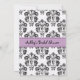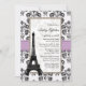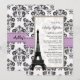 Les invitations nuptiales de douche de joli et sophistiqué style parisien avec une frontière florale de damassé noire et blanche antique vintage, lilas mauve-clair ont imprimé la conception de regard de ruban et Tour Eiffel là-dessus. Conçu par Chrissy H. Studios, LLC. Tous droits réservés.