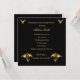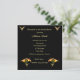 This wedding invitation features orange day lilies and yellow and black butterflies on a black background. Symbolically the orange day lily is associated with forgetting worries, flirtation, and cheerfulness.