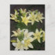 Creamy white lilies that seem to glow against a black background are featured on this product