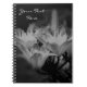 Pretty lily flowers in bloom in black and white personalized notebook. Nature photography by Susan. Replace your text in the template, or be sure to delete for no text. Click on Customize to change font size, colour, and style. Contact me with any questions or requests. This image is available on many products in my store. Please visit Smilin' Eyes Treasures for more flower, animal, and nature cards and gifts for home and office.