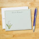 This personalized lily of the valley note card features a soft sage green background and a delicate hand-drawn flower -- my own original art, hand-drawn on paper and painted with watercolors, the old-school way. Your name appears in graceful script across the top. A thin gold border completes the refined design, making this card ideal for thank-yous, personal notes, or thoughtful gifts.