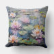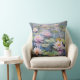 This throw pillow is decorated with pink, yellow, and white Lilies in a pond.