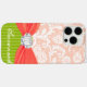 Lime and Coral Faux Rhinstone Personalize Damask Case-Mate iPhone Case