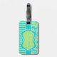 Lime, Aqua, White Striped Damask Luggage Tag