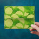Lime slices and leaves. Seamless pattern. Custom background colour. Custom text.
