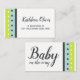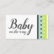 In this bright, modern design, I've paired a modern script font with an all-caps, sans-serif typeface for a fresh, pretty look. On opposite ends of each side I've added bright striped and dotted accent graphics. The palette in the bold imagery includes lime green, robin's egg blue, dark grey and white. On the front is a place holder template field for mom's name and details about the gift registry store. On the back, "Baby on the way!" was rendered in two parts - one considerably larger - and placed in the centre of the white space. The type is rendered in coordinating dark grey and you may use different fonts, if you'd like to play with the Zazzle editing tools and update this design to suit your needs. Please let me know if you need help with customizing or if you have special requests. // Designed by Melody Watson for Paper Muserie.