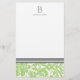 Pretty and elegant bright apple green, charcoal grey and white chic vintage floral damask patterned custom monogrammed stationery for the bride and groom. Add your initial or name to create unique personalized wedding stationery.