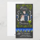 Joyeux cartes photos de vacances de Noël avec un tableau noir look arrière - plan, beaucoup de tourbillons vert citron et texte qui dit Joyeux Noël, une série de lumières d'arbre dans les bleus et citron, citron et bleu ornements suspendus, et des zones que vous pouvez customiser ces beaux et brillants cartes photos de vacances avec votre photo et les noms!