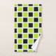 Lime Green and Black Squares White Bath Towel Set