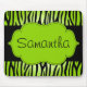 A stylish lime green and black zebra pattern is featured on this personalized mousepad.