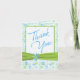 This fresh and airy bright blue, white, and lime green floral thank you card with FAUX ribbon and flower brooch matches the Bat Mitzvah invitation shown below. You can also select the 5x7 size if you want something larger.