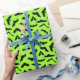 Lime Green Bat Pattern Halloween Wrapping Paper