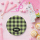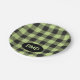 Lime Green Black Buffalo Plaid Monogram Initials Paper Plate