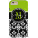 Lime Green Black Damask Pattern Monogrammed Case-Mate iPhone Case