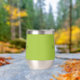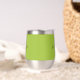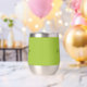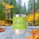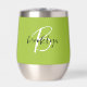This personalized thermal wine tumbler features a monogram and first name in modern black and white script on a trendy lime green background.