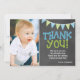 Lime Green & Blue Chalkboard Boy First Birthday Thank You Card