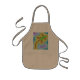 This apron is made with a durable fabric! My grandson LOVES it! The shape provides great coverage to protect clothes from paint spatters, etc. The print quality is excellent! The detailed lines of the dragon drawings are printed in a crisp, clean manner.