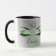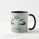 This stunning Lime Green Glitter Eyes Monogram Mug features a Silver Queen's Crown and a pair of eye lids with Lime Green glitter eyeshadow, diamanté effect liner with long black lashes on a silver glitter effect background. Personalize with the name of your choice in matching Lime Green. Designed by Jacqueline.