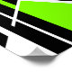 Crop to standard frame sizes or your own personal preference (available in small to large sizes of various proportions and different paper types). Fluid, geometric shapes and lines in bright, fluorescent lime green, white, and gray come together to create an abstract image, a contemporary addition to your home or workspace, in the Mid-Century Modern design style.