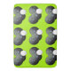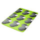 Pictured on lime green are bowls and a jack in a repeated pattern