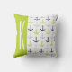 Lime Green, Light Blue, Navy, Nautical Anchors Throw Pillow