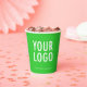Easily personalize our 8 ounce paper cups with your business logo and custom text. These FDA approved paper cups are for cold and hot drinks. The dimensions for the 8 oz cups are 3.75 inch x 3 inch. Available with or without lids. Also available in 12 oz size. Designed in lime green and other colors (all colors are customizable). Sold in sets of 8. Low minimum order quantity and no setup fee. Printed in the U.S.A.