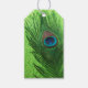 Perfect still life photography of a peacock feather. The lime green background makes the peafowl look stunning.