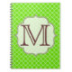 Lime Green Quarterfoil Latti Monogram Initial Quarterfoil Lattice Quarter Foil Monogram Initial Personalized Custom Fabric Pattern Note Book