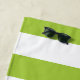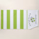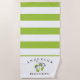 Add personalized beach towels to your beach house. They are customized with a lime green and white stripe pattern. On the bottom there's a life preserver with a decorative swirl going through it. Add your name to "beach House". Please visit our store for other designs and colours.