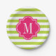 Lime Green Stripes with Hot Pink Monogram Paper Plate