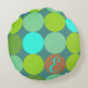 Lime Green Teal Turquoise & Rust Circles Monogram Round Pillow